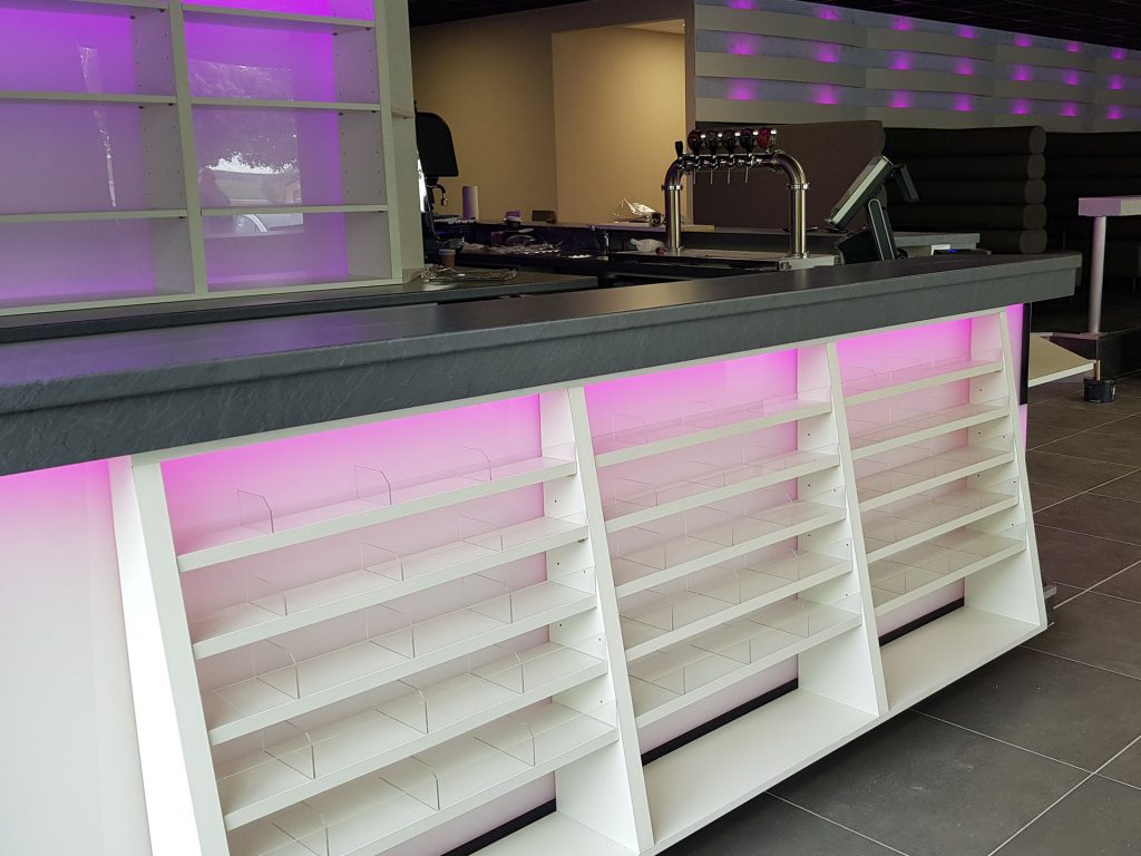 De la conception à la réalisation, nous intégrons tous les éléments nécessaires : comptoir d’accueil, zones de dépôt, mobilier sur mesure, éclairage LED et optimisation des espaces. Chaque projet est pensé pour offrir une expérience fluide et agréable à vos clients.