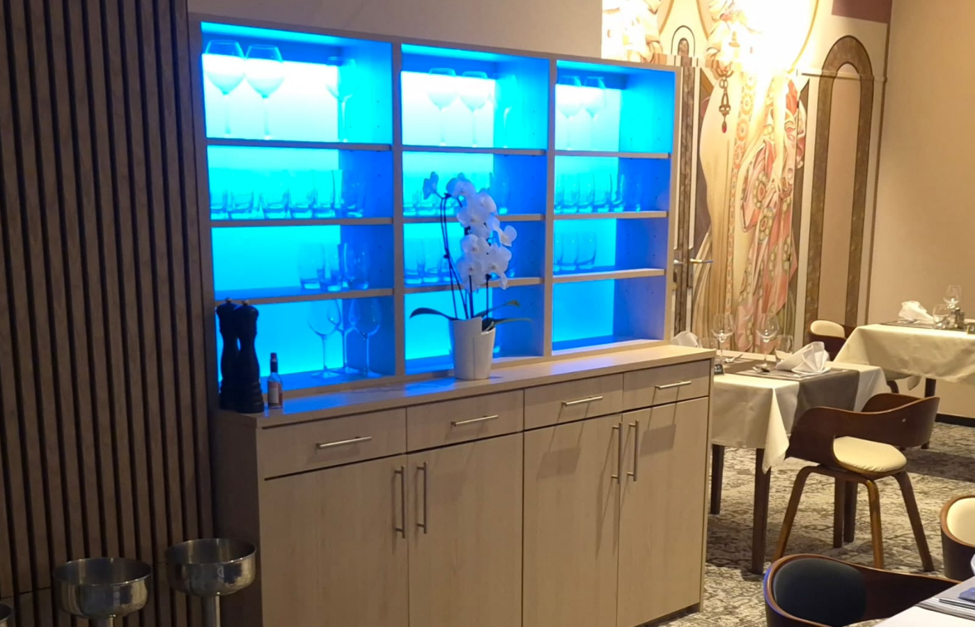 Grâce à son expertise en menuiserie sur mesure, l’entreprise conçoit et réalise des espaces uniques, entièrement adaptés à chaque projet : comptoirs de bar, banquettes, mobilier, cabines DJ, espaces VIP ou encore éléments décoratifs personnalisés.